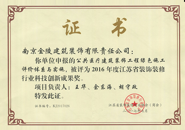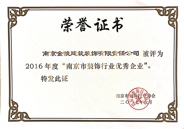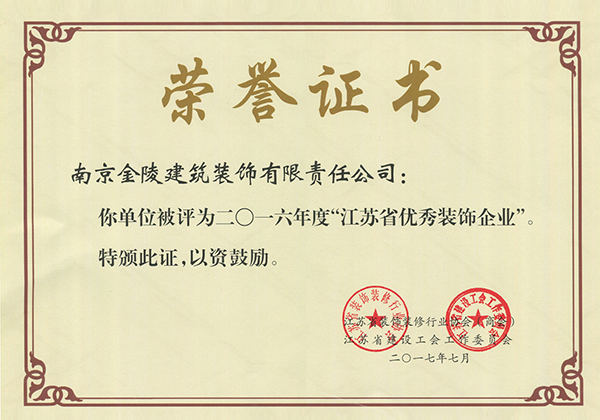 2016年度江蘇省優秀裝飾企業