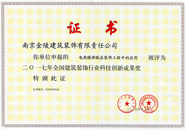 電熱膜供暖在裝飾工程中的應用被評為2017年全國建筑裝飾行業...