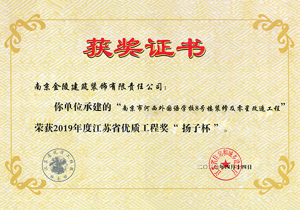 2019年度江蘇省優(yōu)質(zhì)工程獎“揚子杯”-南京河西外國語學校