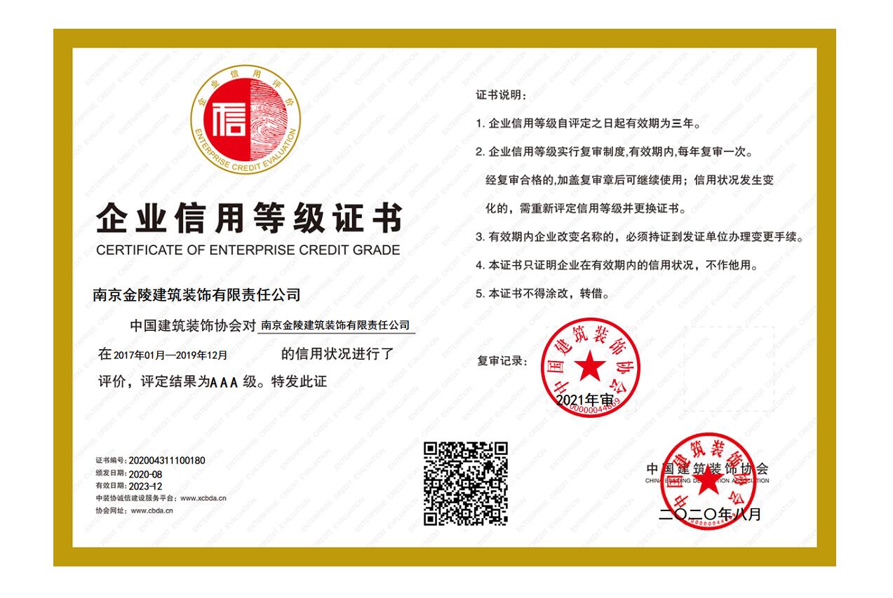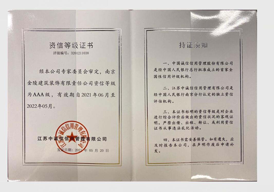 中裝協(xié)信用等級證書