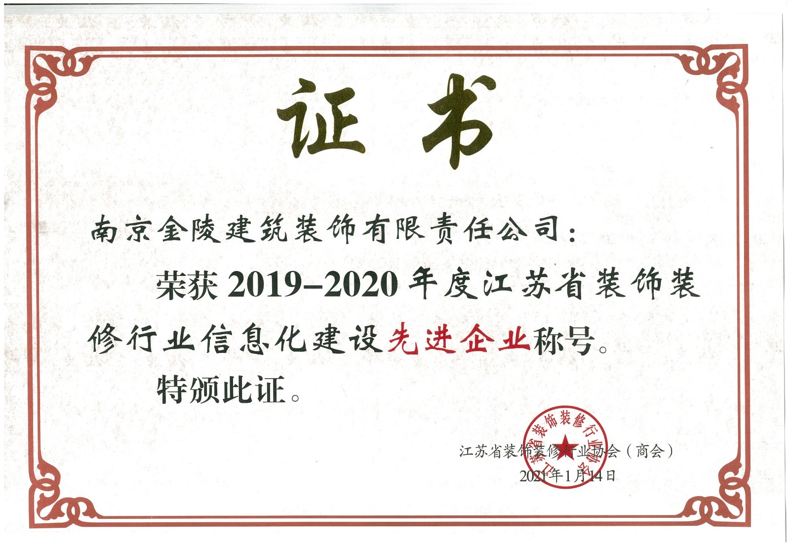 江蘇省裝飾裝修行業(yè)建設(shè)化信息企業(yè)