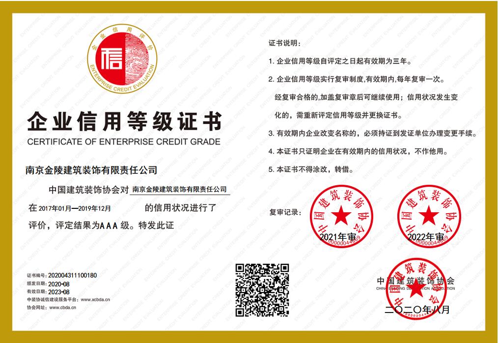 中裝協的信用評價證書